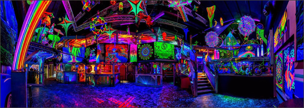 The „Spirit Of Psychodelic“ have their focus on Psy-Trance, Oldschool Goa and the optical Oldschool blacklight deko from « Silver Star ». We guarante pure UV for your eyes.
